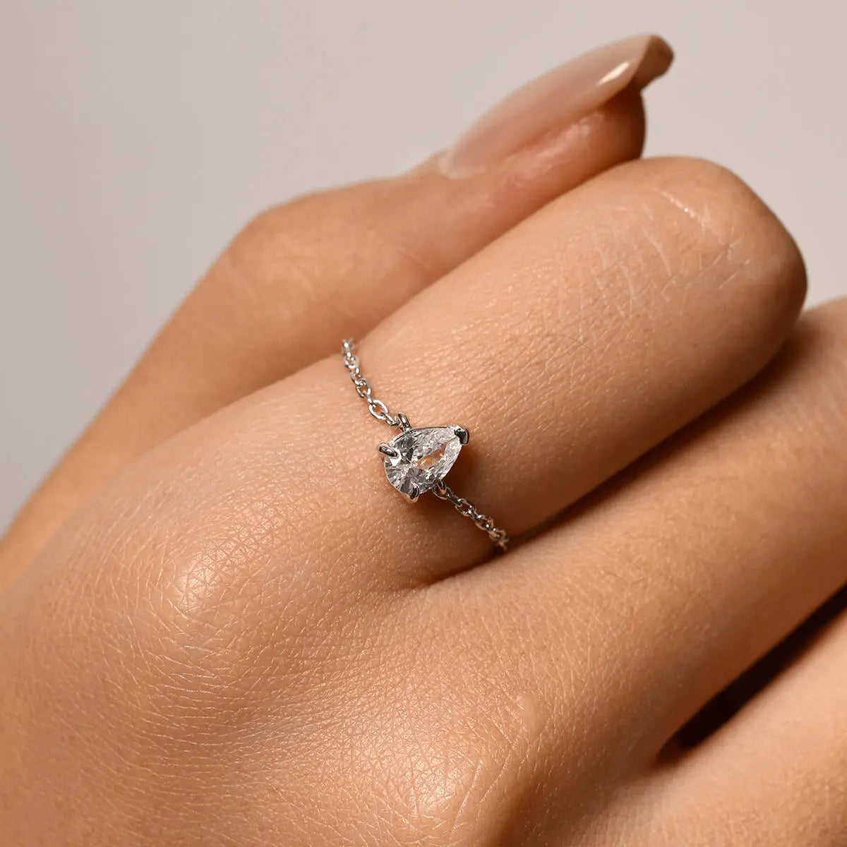 Dainty Pear Chain Ring